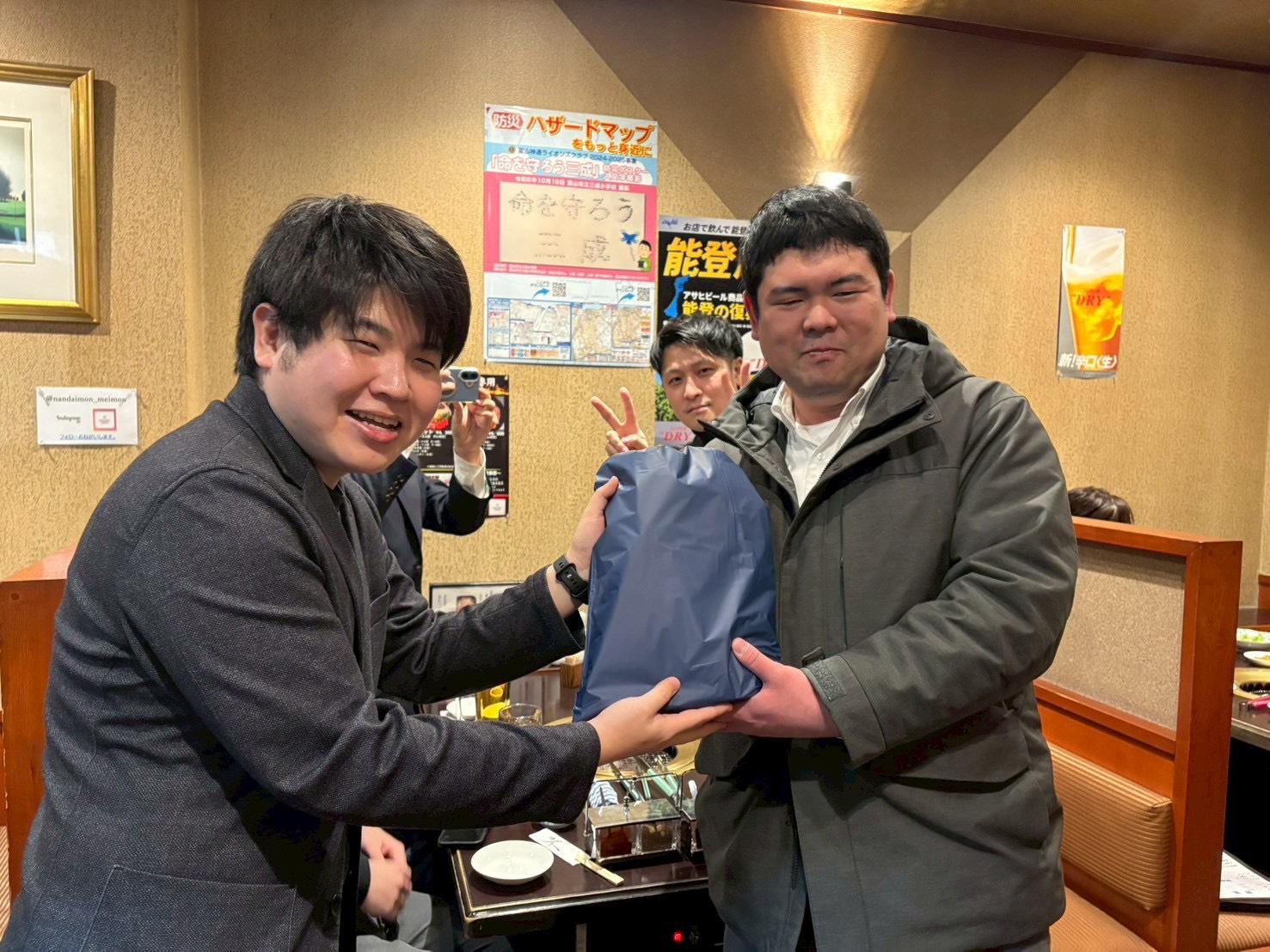 新年祝賀会では、新田八朗先輩、藤井裕久先輩など、多くの先輩方とお話しする機会をいただき、富山JCの現役会員とシニア会員の繋がりの強さを目の当たりにしたとともに、温かいお言葉や貴重なアドバイス、そしてたくさんの激励を頂戴しました。先輩方が築いてこられた富山JCの歴史と想いを大切にしながら、一員としての自覚と責任を持ち、先輩方に恥じぬよう、さらなる成長を目指してまいります。