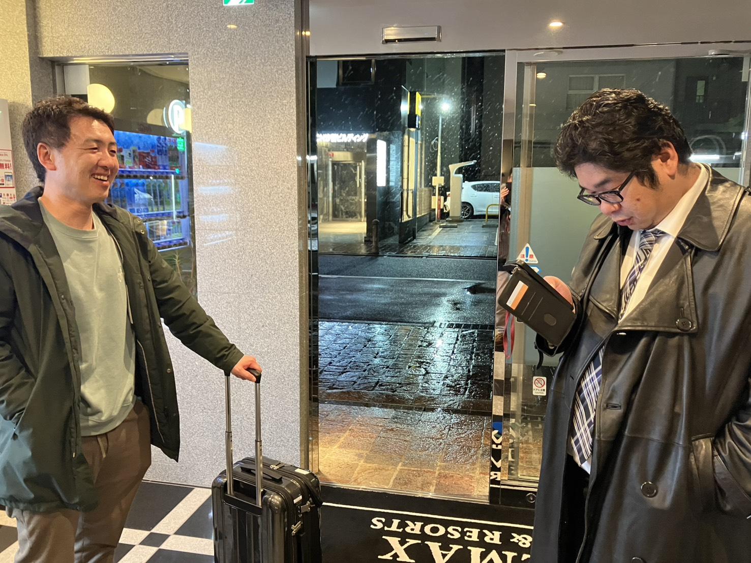 ドジっ子気質の東副理事長が2人分をまとめて予約したのですが調べていくと、富山に帰るはずの次の日を予約していたそうです。挙げ句の果てに、他のホテルはどこも満室。都会でも雪が降る、大寒波の日に新橋の街を徘徊する大の大人が2人。ようやく見つけたカプセルホテルに吸い込まれるように泊まったそうです。