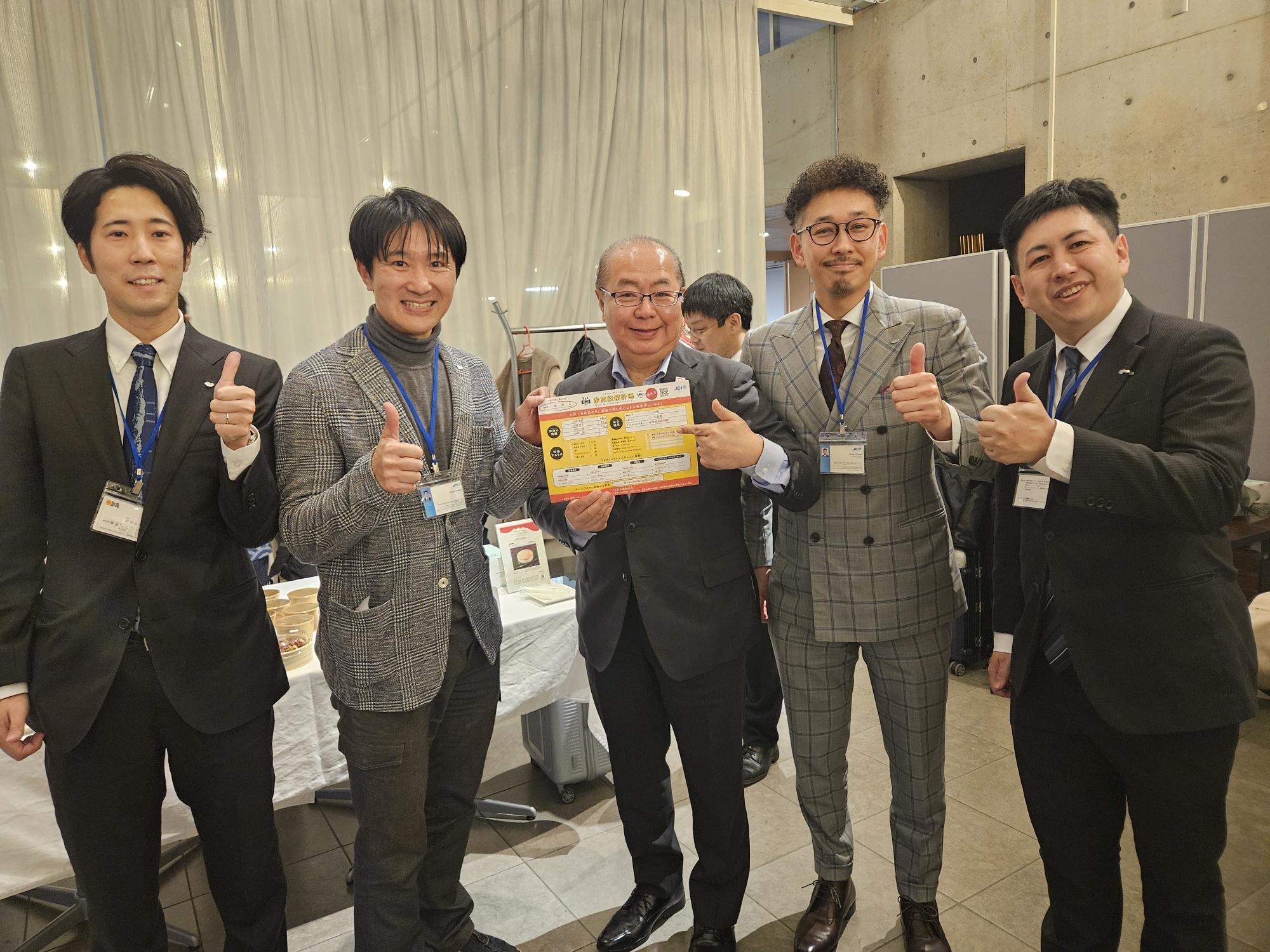 そしてその夜には富山ブロックの奈部会長、竹中運営専務、織田委員長と合流し、ホタルイカミュージアム2階のパノラマレストラン光彩にてレセプションに参加しました。冒頭新田知事からご挨拶があり、「しあわせる。富山」の目的としあわせ人口の創出等について説明がありました。レセプションの目的は、県内外の専門家である登壇者同士を繋ぎ、新たな関係を作ることと、富山に愛着をもっていただき、1000万人を目標とする富山のしあわせ人口に加わっていただくことです。