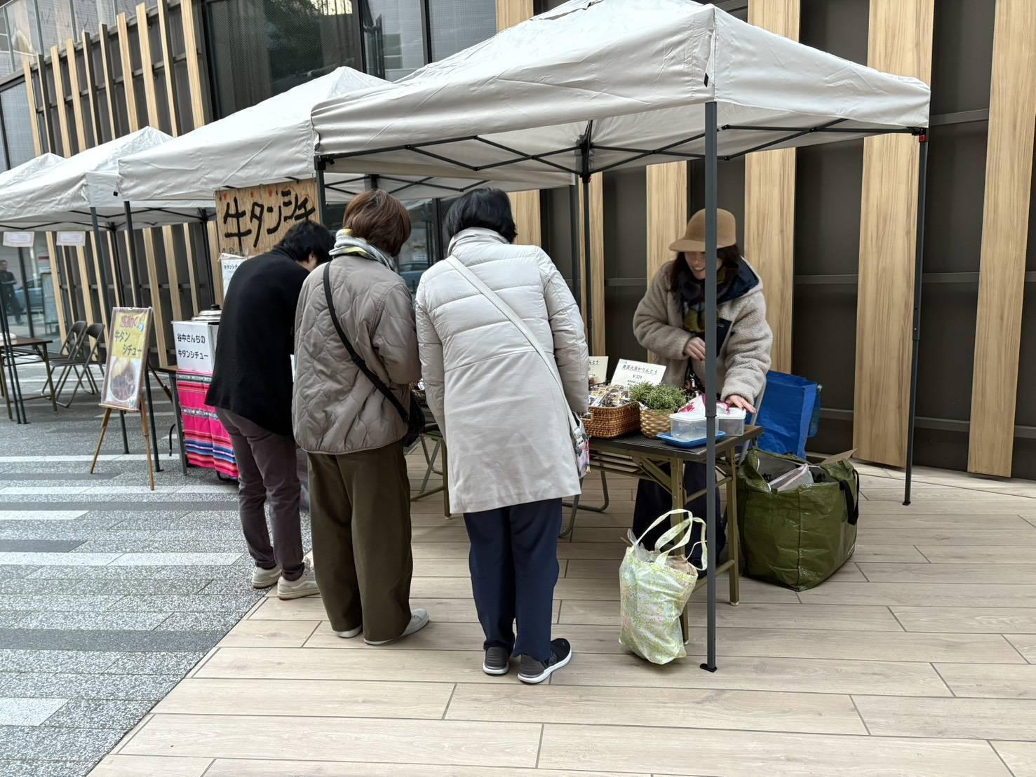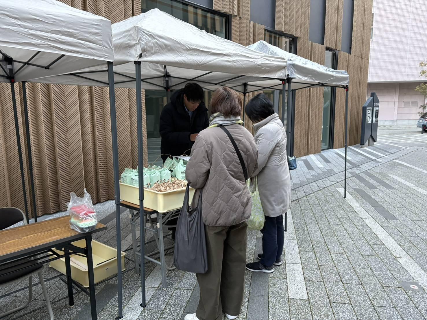会員の出店では、大井山さんが新鮮な野菜を販売、竹田さんが軽食やお惣菜を販売、さらに飯山さんがお米の販売をされており、どのブースも多くの方で賑わっていました。どれも美味しそうで、禁酒中なのに思わずお酒が飲みたくなりました(笑)